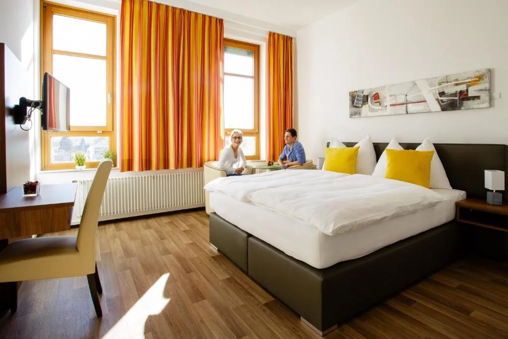 großes geräumiges Zimmer mit eigenem Bad und extra WC. Das riesige komfortable Bett war super bequem. Die Rezeptionistin war sehr nett und zuvorkommend. Man merkt zwar, dass es früher ein Krankenhaus war - aber es stört überhaupt nicht. Es wurden hier die Klassenzimmer zu Hotelzimmer umgestaltet. Es gibt eine "Gemeinschaftsküche" in der man sich jederzeit einen gratis Kaffee holen kann.